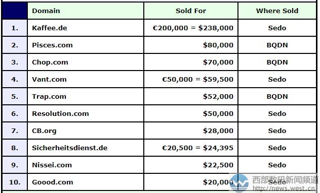 本文转载自新闻资讯,原文链接:DN榜:“咖啡”域名kaffee.de成目前为止今年最贵国别域名!