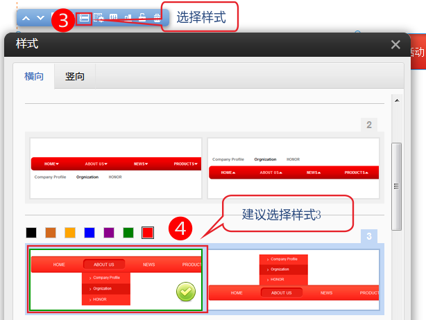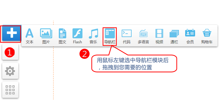 1、依次点击添加-》选中导航栏模块后,拖拽到您需要的位置。