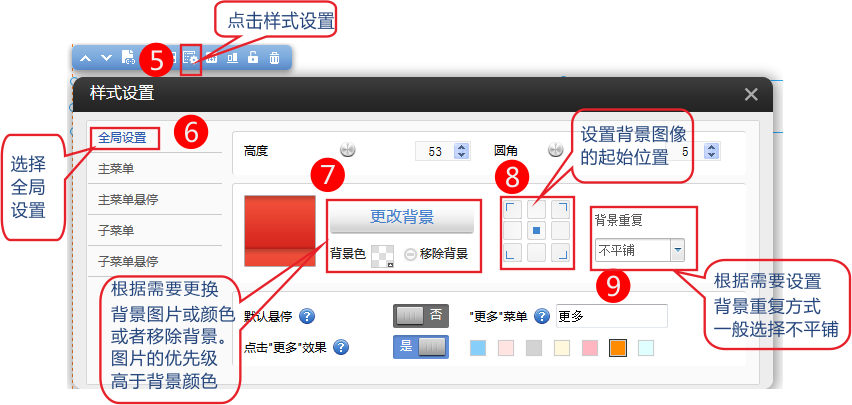 3.主菜单悬停、子菜单、及子菜单悬停操作方法和主菜单相同在此不再敷述。