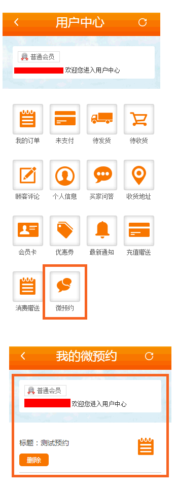 在用户中心-》微预约-》删除即可。