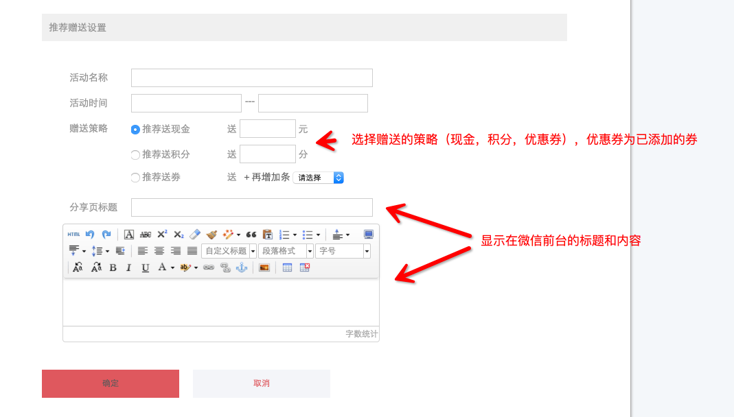 活动设置主要包括推荐赠送,充值赠送和消费赠送 活动所有的页面结尾如下所示