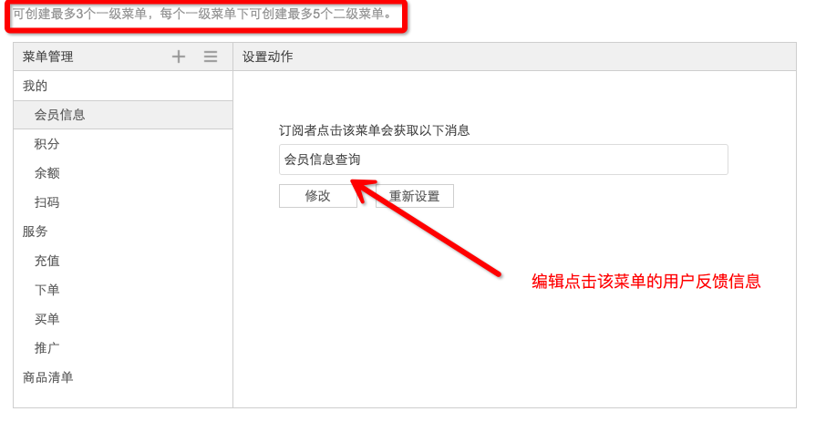 3、自定义菜单自定义菜单是指微信前台底部的菜单,用户可以通过点击菜单打开相应的页面或者获得相应的回复信息。