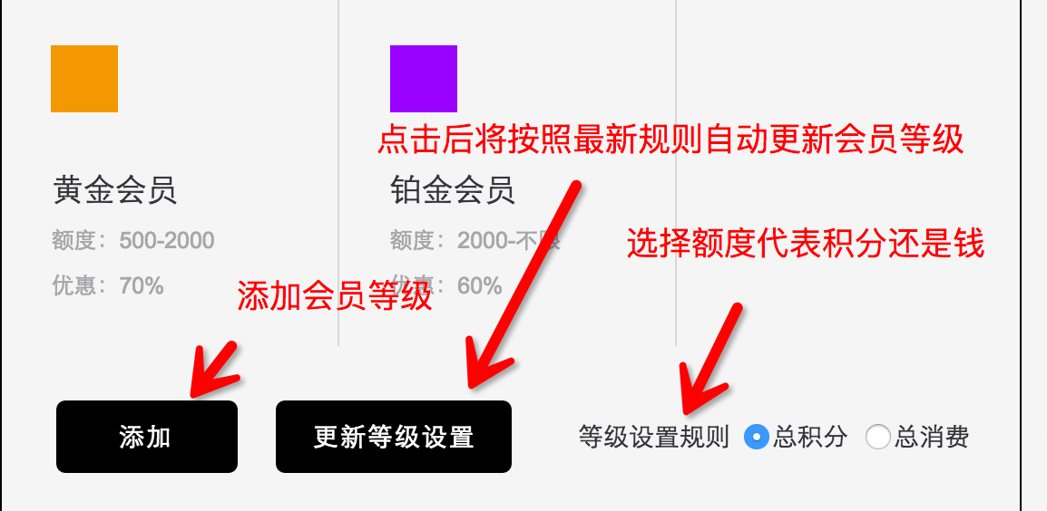 成为会员的方式有通过扫码可以获取用户信息的二维码即可成为会员,还可以通过微信前端绑定手机成为会员。当会员进行消费时会根据设置的会员等级的规则实时的对用户的会员等级进行调整。
