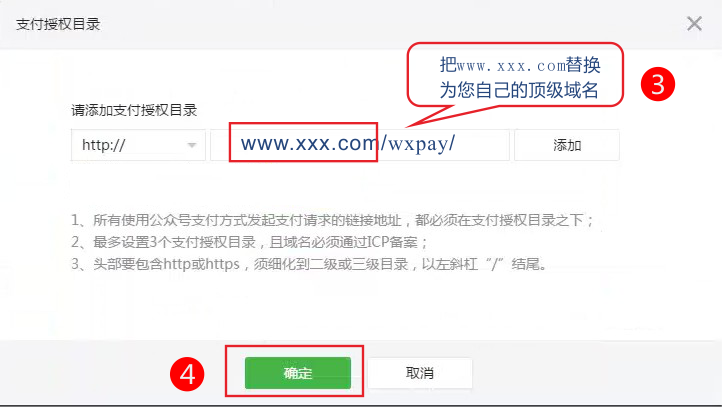 3. 还需要登录微信公众平台进入“公众号设置”的“功能设置”里填写“JS接口安全域名”。 域名为您在支付授权目录中填写的域名