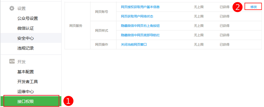 注意还需要在微信公众平台-》开发-》接口权限-》oauth2.0网页授权