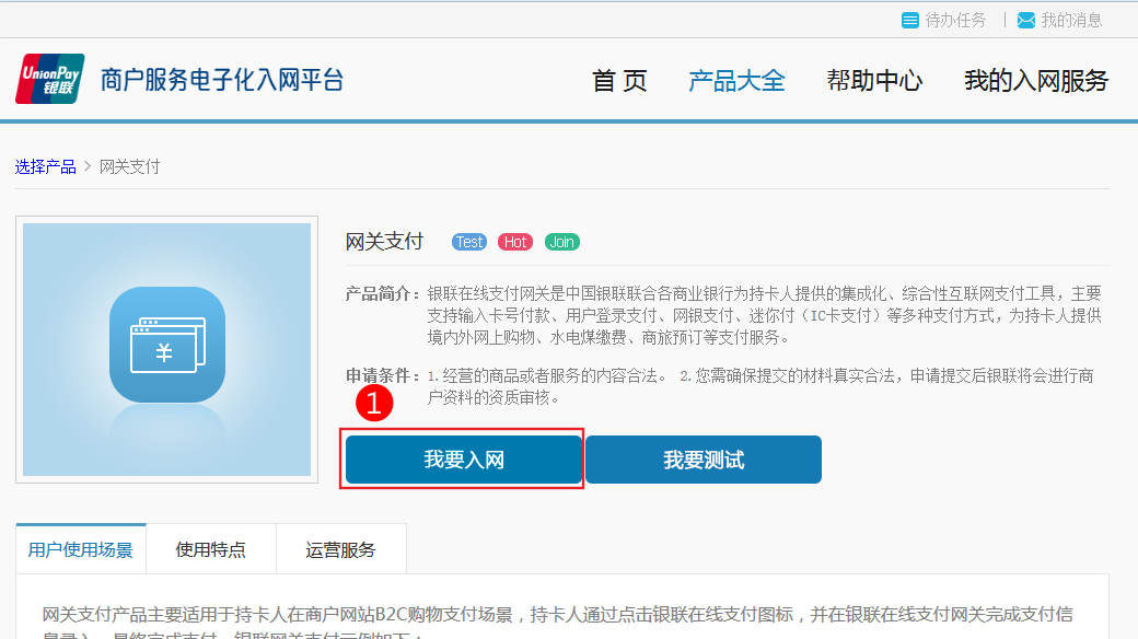 设置银联在线接口设置银联在线接口 特别需要注意 需要银联有两个接口,一定要向银联客服说明需要unionpay 接口 1、访问 https://merchant.unionpay.com/join/product/detail?id=1 点击我要入网
