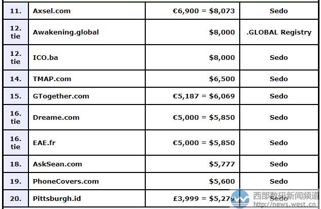 来源西部数码新闻资讯,原文链接:昂贵的“开端”:英文域名inception以366万元居DN榜首