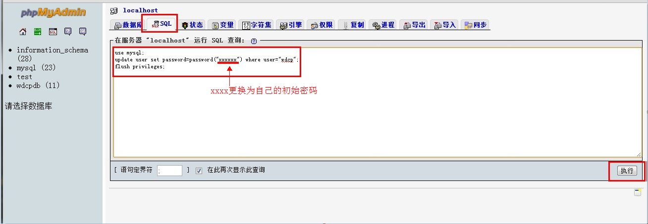[原创]WDCP提示无法连接mysql及创建站点提示mysql密码不正确注意:http://www.west.cn/faq/list.asp?unid=722 请先执行该教程中的脚本,如果无法恢复请按下面步骤排查。 一、wdcp系统访问提示无法连接mysql 1、可能是mysql服务没启动,首先ssh登陆服务器,然后执行service mysqld restart重启mysql再访问试下,ssh远程登陆方法:http://www.west.cn/faq/list.asp?unid=417如果无法启动,先用df -lh查看下home分区有没有挂载,如果没有挂载尝试先重启,重启后还是没挂载,如果没数据或者新购买可以在后台重装,如果有数据请自行挂载,或者在后台选择重新设置磁盘分区(多余磁盘合并到D盘),linux重挂分区等 提交工单我司检查处理,启动报错请选择mssql/mysql数据库不能启动等问题排查提交。 2、重启mysql后还是提示无法连接mysql ①在wdcp访问地址后面添加phpmyadmin直接在线管理mysql,如http://s-53469.gotocdn.com:8080/phpmyadmin 然后输入root,密码为后台服务器初始密码(如果修改过root密码请用修改后的root密码登陆),如果初始密码无法登陆,请尝试root3306,如果这个密码也无法登陆,请按http://www.west.cn/faq/list.asp?unid=571重置再进行登陆。 ②、登陆后点击sql,在里面输入以下sql语句执行,其中xxxxx请替换为初始密码。 use mysql; 然后ssh登陆,vi /home/wddata/data/db.inc.php 按字母a进入编辑模式,找到$dbpw这栏,替换""里面的密码为刚才修改的密码,然后按ESC键退出编辑,再按shift+:(冒号) 键,输入wq回车退出,这样就可以修复wdcp无法连接mysql的问题。 二、登陆创建站点或者创建mysql提示root密码不正确 按上述方法进入在线管理mysql模式,然后执行以下sql命令,同样xxx替换为初始密码: use mysql; $sqlrootpw就是密码,替换为刚才修改的密码,$sqlrootpw_en是否要加密,这里要修改为0.然后按上面的方法保存退出。