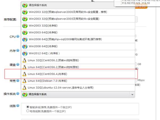 本文档旨在指导用户如何第一次部署和使用负载均衡: 环境设置 使用负载均衡,您需要一台服务器的系统为linux,我们强烈建议您将安装负载均衡的服务器系统设置为CentOS 6.4 64位。如下图 1-1 所示。您也可通过“客户管理中心”->“业务管理”->“独立IP主机管理”,选择现有的弹性云服务器,单击右侧的“管理”, 如图 1-2 所示。在服务器管理界面,选择“重装”,并选择红框中的系统类型,如图1-3所示 图 1-1