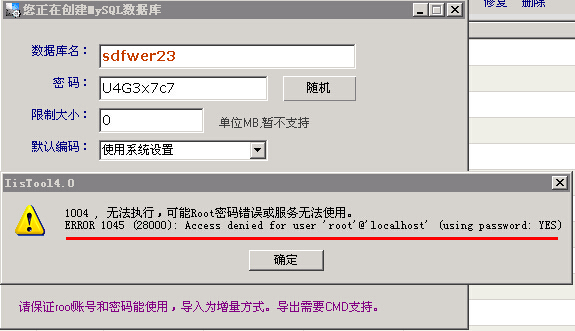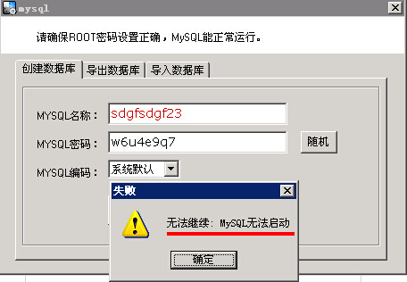 网站管理助手创建mysql数据库失败1.创建mysql时提示: