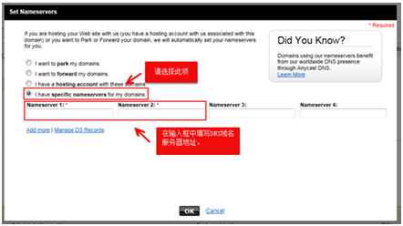 2、点击Products标签中DOMINS前面的【+】,展开域名列表。 3、展开域名列表后,找到需要修改DNS的域名,点击对应的【Launch】按钮。 4、点击后在新页面中找到Nameservers部分,点击【Set Nameservers】。 5、在弹出层的输入框中填写您的域名DNS服务器地址,点击【OK】即可完成设置。