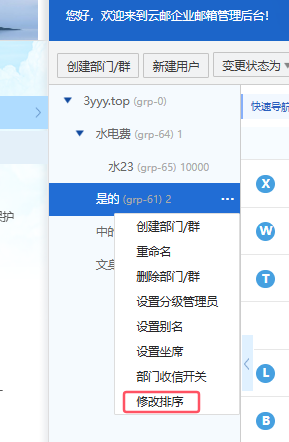 点后面“…”三个点,点修改排序。数字越小排序越前面,数字不能重复。