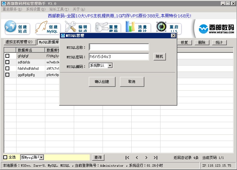 经过近半年的开发、测试,西部数码网站管理助手V3版于近日正式发布。西部数码网站管理助手从2006年发布第一个版本,经过多次的更新,现已具备IIS站点管理、FTP管理、Mysql数据库管理、Mssql数据库管理、服务器安全管理等多项功能,非常适合于拥有多个网站的服务器管理人员使用。