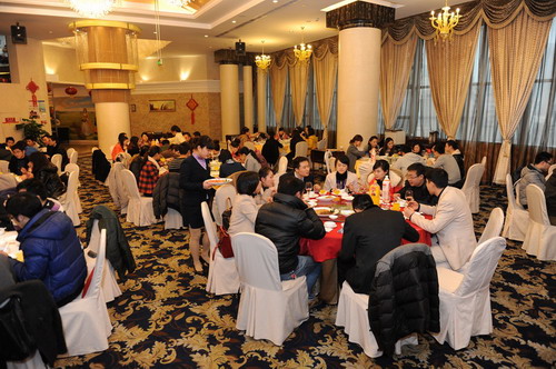 晚上18:00晚宴开始,何总倒满了香槟塔,切下了十周年庆典蛋糕,全体员工举杯同庆,期望新的一年能好运相伴,再攀高峰。宴会上主持人公布了优秀节目评选结果。2012年年会在喜庆、祥和、热烈的氛围中圆满谢幕。